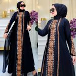Elevate your modest wardrobe with this luxurious black abaya featuring intricate bronze embroidery. The detailed embroidery along the front and sleeves adds a sophisticated touch, making this abaya perfect for formal events or special gatherings. Its classic black color, paired with the richness of the bronze design, creates a striking contrast that exudes elegance and grace.