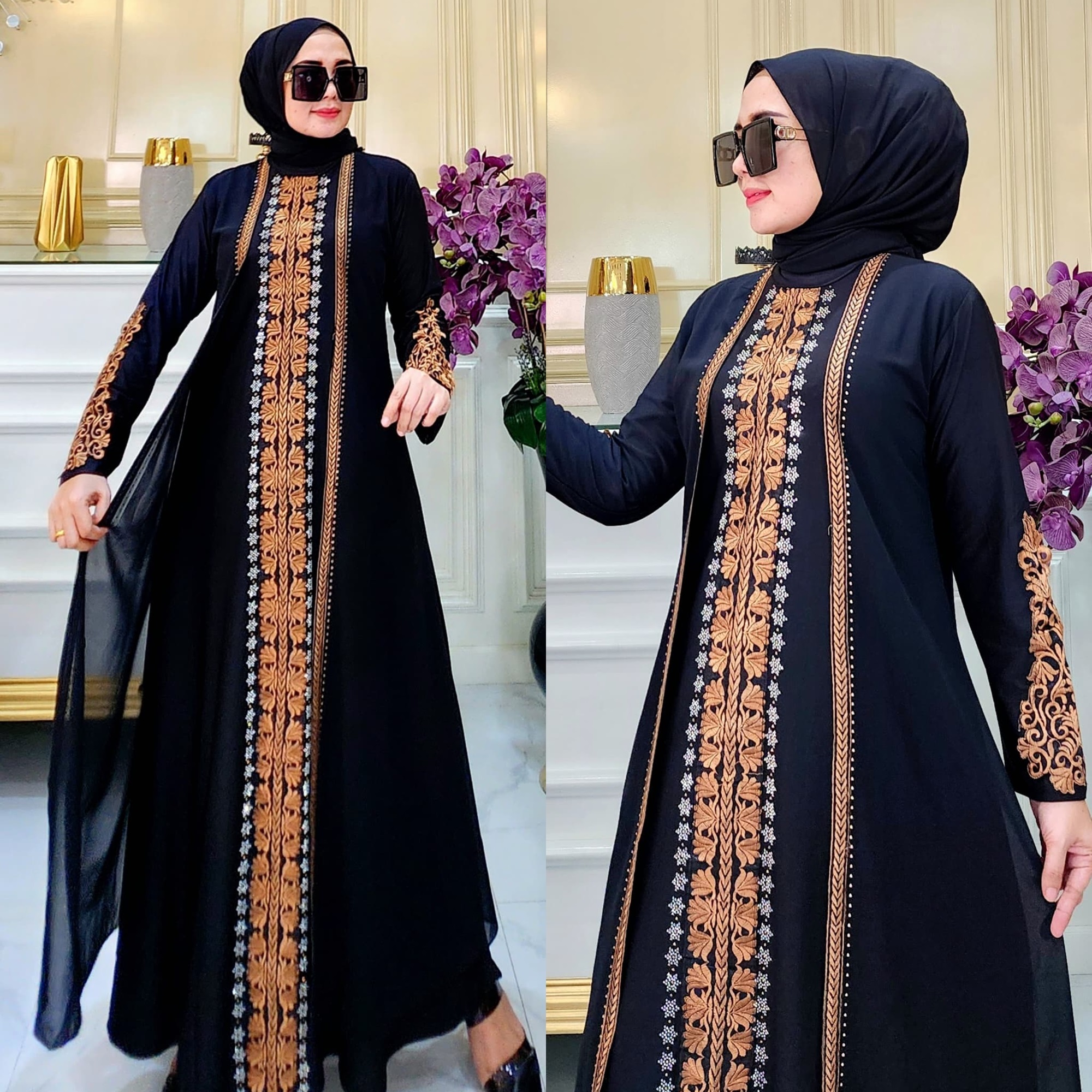 Black Abaya with Elegant Bronze Embroidery – Luxury Modest Fashion