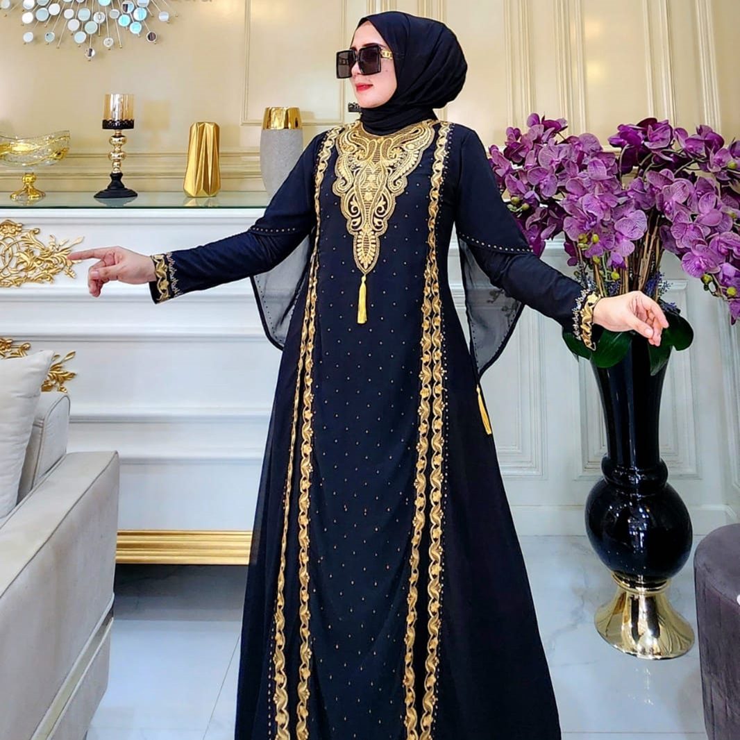 Elevate your style with our Elegant Abaya Dress featuring exquisite gold embroidery, designed for women who value both modesty and luxury. This abaya combines timeless elegance with a modern hijab fashion aesthetic, making it the perfect choice for formal events, special occasions, or even an everyday chic look.