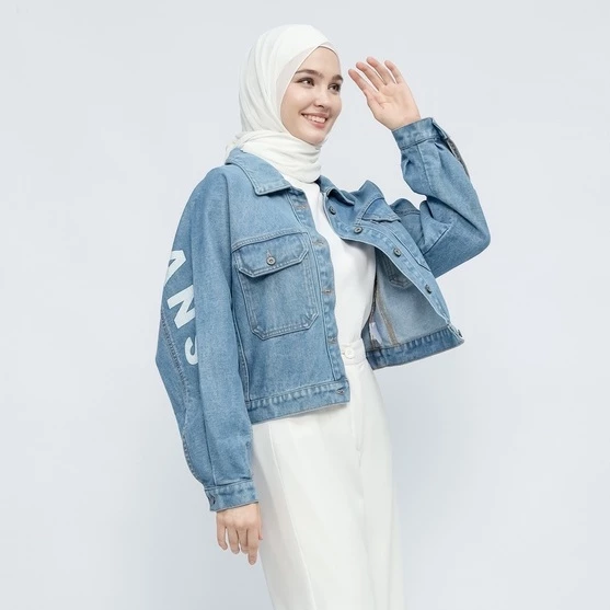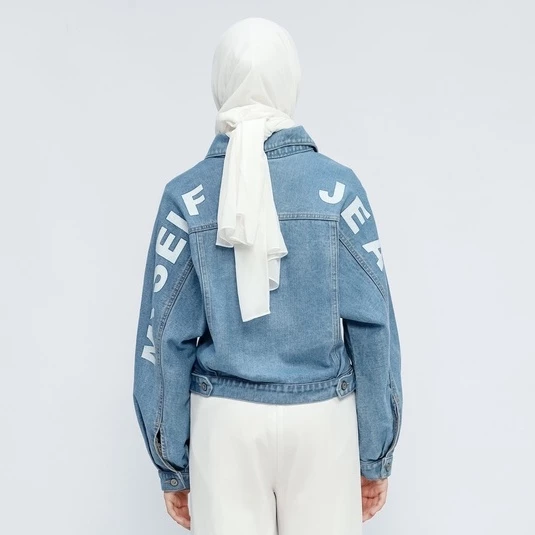 Upgrade your streetwear style with this oversized women’s denim jacket, designed for a modern, modest look. Featuring bold letter prints on the sleeves and back, this fashion-forward piece combines comfort and statement style. Made from premium-quality denim, this jacket ensures durability and breathability, perfect for all seasons. The relaxed fit and button-up front offer a versatile look, whether layered over casual outfits or styled for a chic hijabi aesthetic. Ideal for women who love a mix of modesty and contemporary fashion, this jacket is a must-have for trendsetters in Europe, the Middle East, and America.